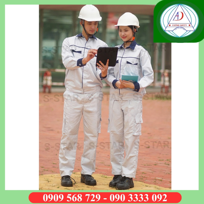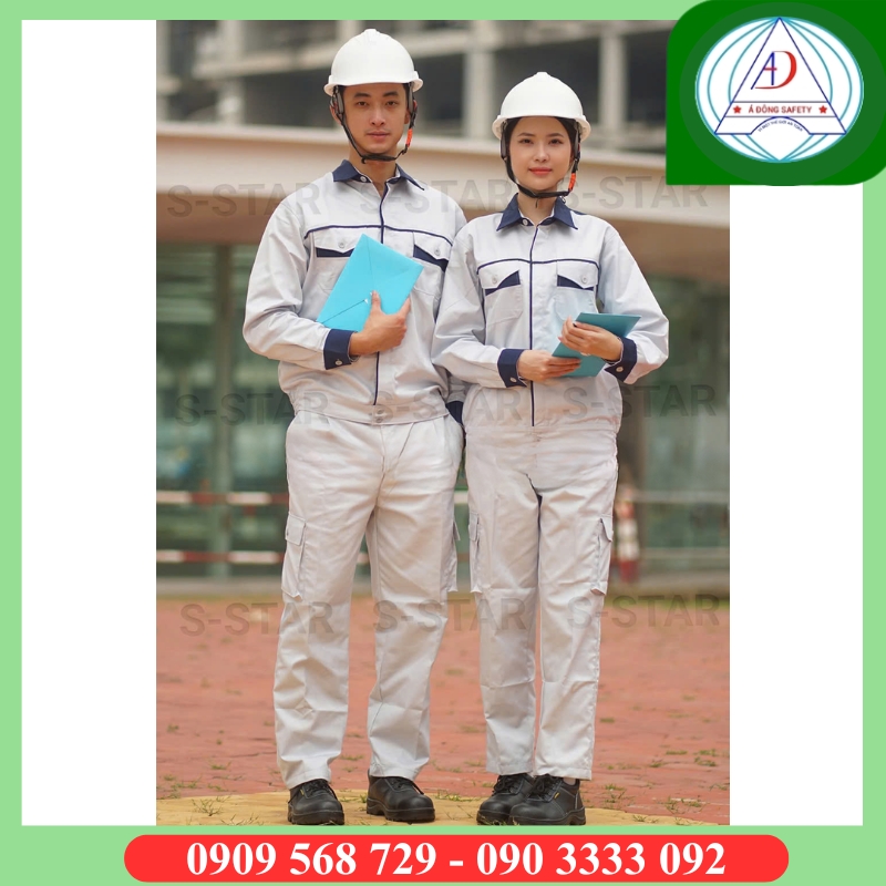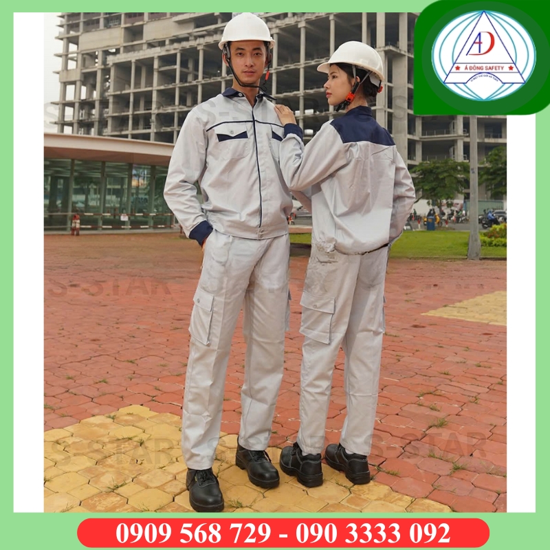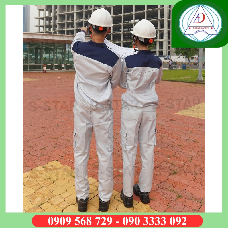 - Áo màu xám phối xanh, phù hợp cho Kỹ sư quản lý công trình, cấp quản lý giám sát… Chất liệu co giãn thấm hút mồ hôi tốt, thoáng khí.