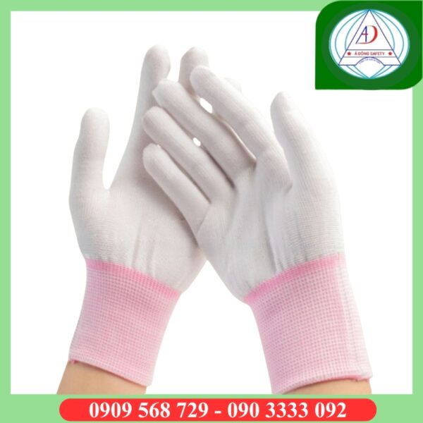 - Găng tay không phủ lòng PU chống tĩnh điện là loại găng tay được làm từ vải polyester hoặc nylon, có phủ một lớp polyurethane (PU) ở mặt ngoài, nhưng không phủ ở lòng bàn tay. Đặc điểm nổi bật của loại găng tay này là khả năng chống tĩnh điện, giúp bảo vệ các linh kiện điện tử nhạy cảm và người sử dụng khỏi các tác hại của phóng điện tĩnh.